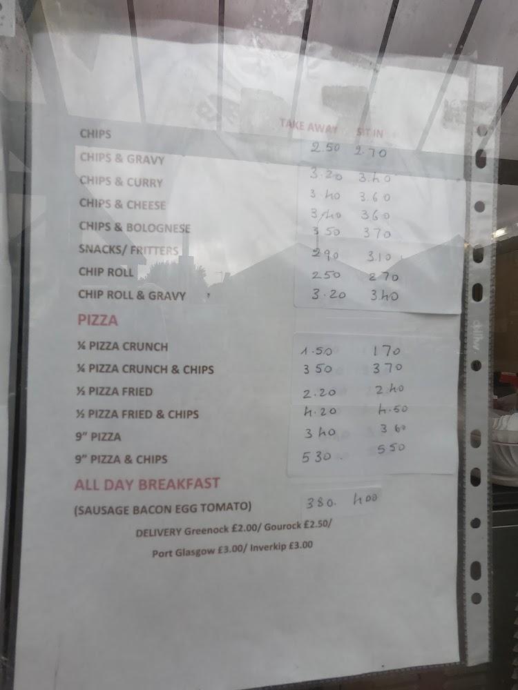 Nestled at 17 W Stewart St, Greenock PA15 1SN, Quincy's Fast Food stands proudly among its peers as a top fish and chips takeaway. With easy access and wheelchair-friendly amenities, everyone can enjoy the culinary delights of this establishment. The modern, casual atmosphere draws in groups, families, and solo diners alike, making it a popular choice throughout the week. Its versatility shines during lunch and dinner service, where hearty meals and delicious snacks come together to cater to diverse tastes. The friendly staff enhances the experience, creating a cozy environment that feels like home. Beyond the delectable menu, the café’s attention to customer service is noteworthy, ensuring every visit is a delight. There’s something special about Quincy's that resonates not just with locals but also with tourists exploring Greenock. The café's charm is amplified by its reasonable prices and consistent quality, making it a heartwarming staple in the community. You’ll find attractive offers here, particularly for lunch specials, making dining affordable and fulfilling for everyone.